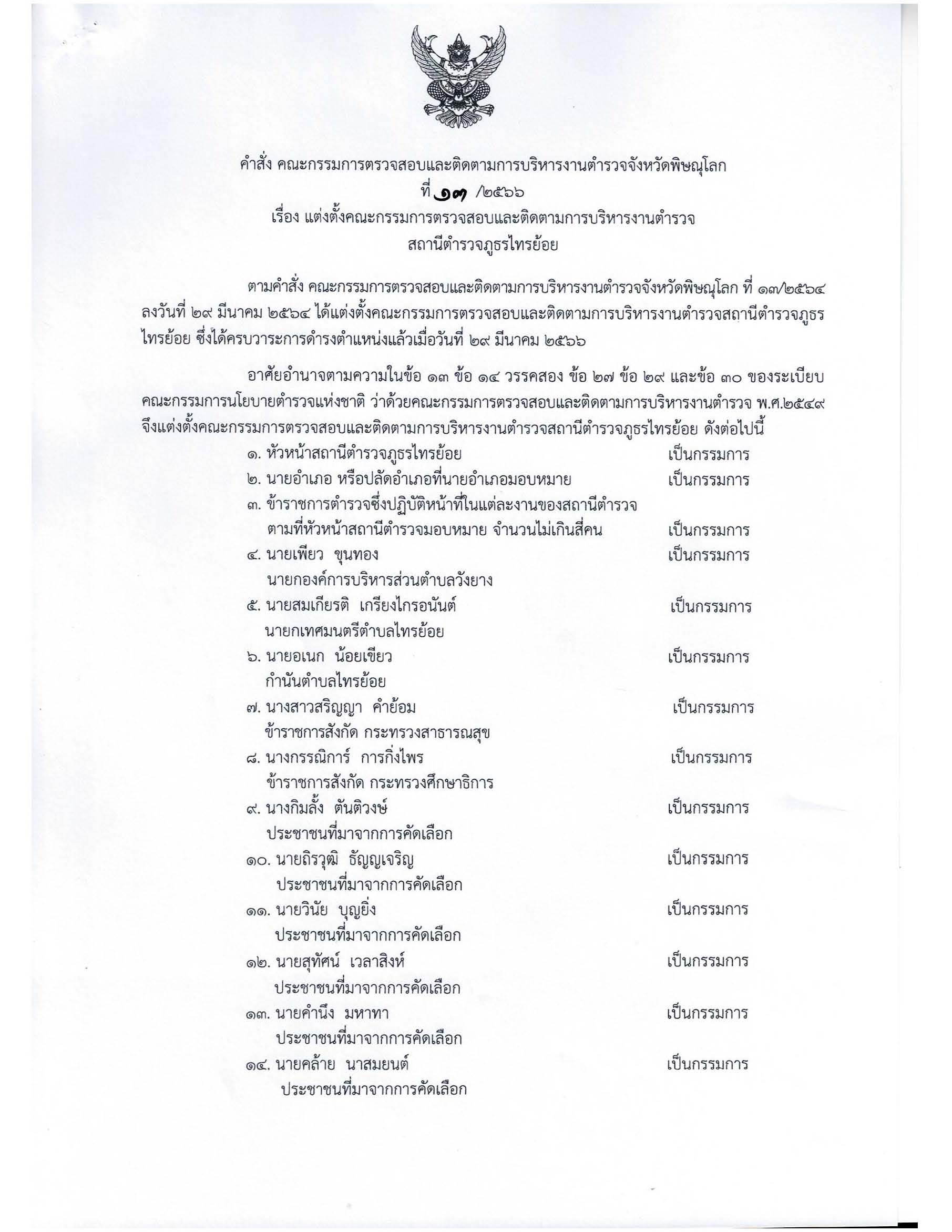 คำสั่งแต่งตั้ง กต.ตร. สภ.ไทรย้อย