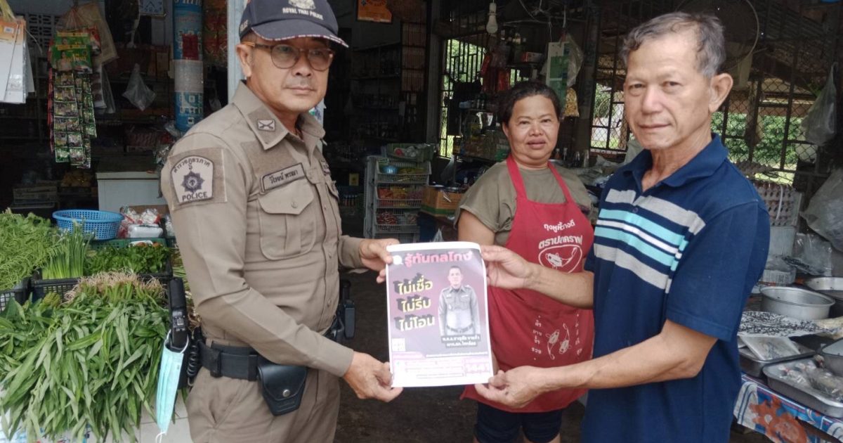 วันนี้ 7 กรกฎาคม 2566 เวลา 9.00 น. ภายใต้การอำนวยการของ พ.ต.อ.ชาญชัย หาแก้ว ผกก.สภ.ไทรย้อย, พ.ต.ท.สุทธิพงษ์ สารพานิช รอง ผกก.ป.สภ.ไทรย้อย, พ.ต.ท.อยู่คง กาวิน สวป.สภ.ไทรย้อย ได้มอบหมายให้ร.ต.ต.ธนัญชัย มากมิ่ง รอง สว.(ป)สภ.ไทรย้อย ร้อยเวร 20 พร้อมชุดสายตรวจร่วมกับงานสอบสวน ลงพื้นที่ประชาสัมพันธ์ เรื่อง ‘รู้ทันกลโกง ไม่เชื่อ, ไม่รีบ, ไม่โอน’ ให้แก่ประชาชนในพื้นที่ในเขตรับผิดชอบ