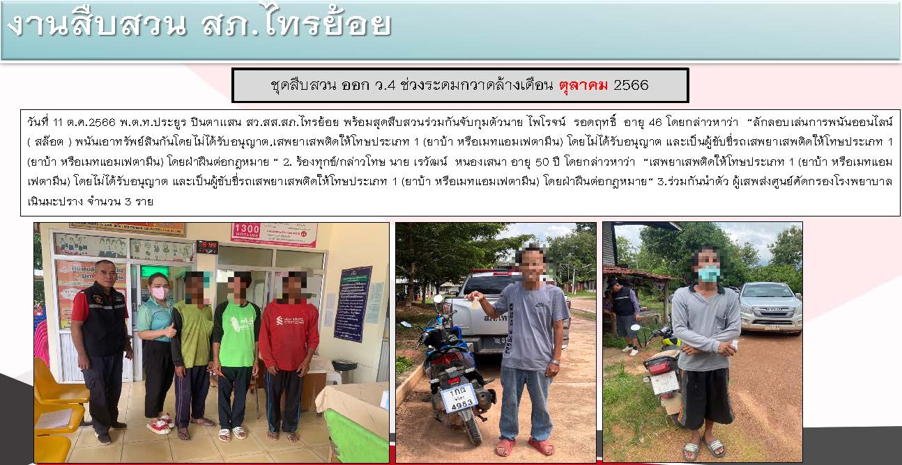 ผลการปฏิบัติ งานสืบสวน เดือนตุลาคม 2566 12 เมษายน 2567 โดย saiyoi_t / ข่าวประชาสัมพันธ์,ข่าวกิจกรรม,ข่าวประชาสัมพันธ์,ข่าวประชาสัมพันธ์,ข่าวฝากประชาสัมพันธ์,ไม่มีหมวดหมู่ FacebookFacebookXXLINELine