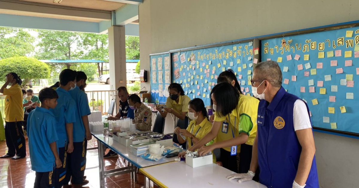 ร่วมกับ เจ้าหน้าที่ฝ่ายปกครอง อำเภอเนินมะปราง ร่วมกันตรวจปัสสาวะ หาสารเสพติด ตามโครงการ รณรงค์ต่อต้านยาเสพติด ณ โรงเรียนไทรย้อยพิทยาคม