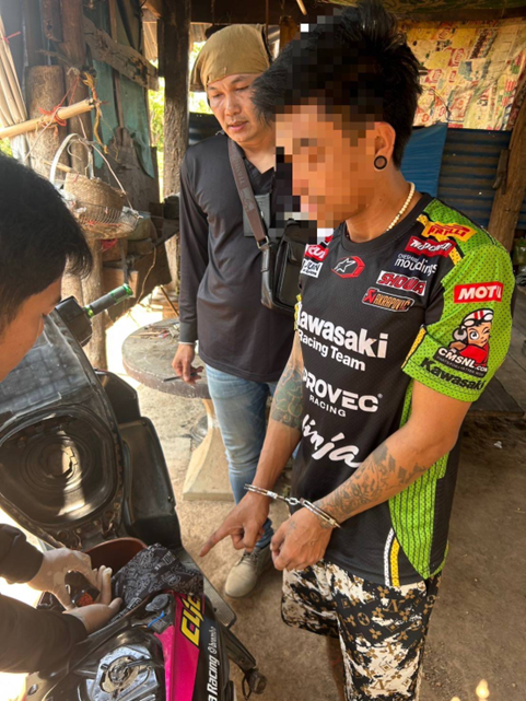 วันที่ 14 ก.พ 68 เวลา 13.00 น. ร.ต.อ.คนึง พรมใจ ได้รับแจ้งเหตุลักทรัพย์รถจักรยานยนต์หาย จากบ้านวังกระทะ ม.8 ชุดสืบสวนได้รับแจ้งจากสายลับว่าพบรถจยย.อยู่บ้านเลขที่ 42 ม.3 ต.วังโพรงฯ ชุด30และ70 ร่วม ว.4 ที่เกิดเหตุ พบรถจยย.ที่แจ้งหายในบ้านหลังเกิดเหตุจริงซึ่งกำลังเปลี่ยนแปลงสีตัวรถอยู่ จึงเข้าจับกุมผู้ต้องหาและแสดงบัตร ปปส. จนท.เข้าตรวจค้นขยายผลบ้านหลังดังกล่าว พบของกลางรายการที่ 1 ยาบ้า จำนวน 127 เม็ดซุกซ่อนใต้เบาะรถจยย.คันสีชมพู ของกลางรายการที่ 2 เงินสด จำนวน 3,340 บาท และของกลางรายการที่ 3 โทรศัพท์มือถือ 1 เครื่อง จึงร่วมกันตรวจยึดของกลางดังกล่าว พร้อมแจ้งสิทธิ์และข้อกล่าวหาว่า “ลักทรัพย์ในเคหสถานในเวลากลางคืน”1 คดี และ ข้อหา “จำหน่ายยาเสพติดให้โทษประเภทที่ 1 (ยาบ้า)โดยมีไว้ครอบครองเพื่อจำหน่าย,เสพยาบ้าและลักลอบเล่นการพนันออนไลน์(สล๊อต)ฯ” อีก 1 คดี ส่งตัวให้พนักงานสอบสวนดำเนินคดีตามกฎหมายต่อไป