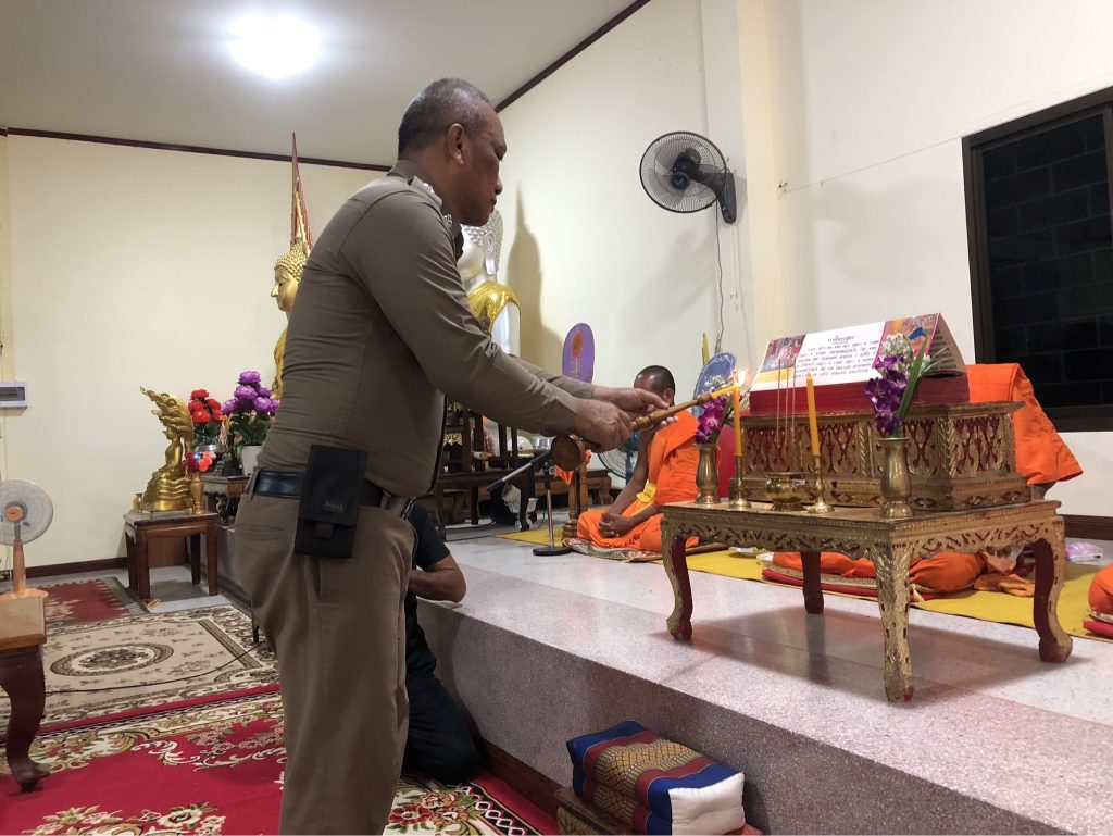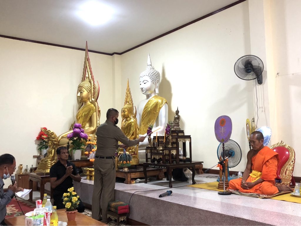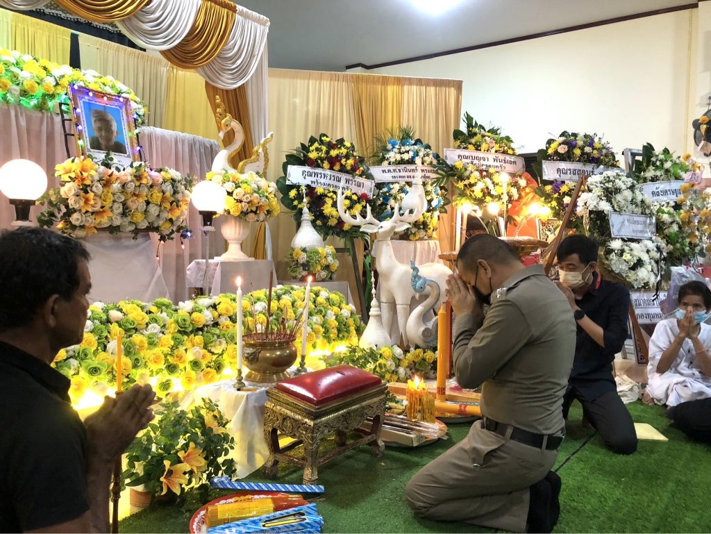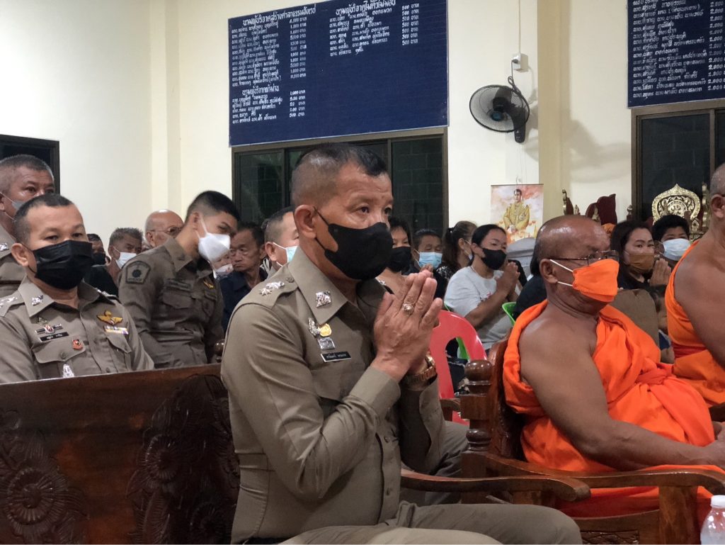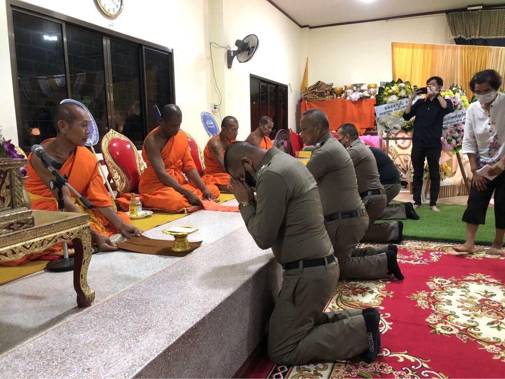 วันนี้(15 มิ.ย.2566)เวลา ๒๐.๐๐น. พ.ต.ท.ธานินทร์ พรมเกต รอง ผกก.สส.สภ.ไทรย้อย รรท.ผกก.สภ.ไทรย้อย พร้อมด้วย พ.ต.ท.อยู่คง กาวิน สวป.สภ.ไทรย้อย พ.ต.ท.วินัย สวนนุ่ม สว.(สอบสวน) สภ.ไทรย้อย,ร.ต.อ.คนึง พรมใจ รอง สว.(สอบสวน) สภ.ไทรย้อย และข้าราชการตำรวจ สภ.ไทรย้อย เป็นเจ้าภาพสวดอภิธรรมศพคุณแม่คำมุง พรรณา มารดาของ ด.ต.วิโรจน์ พรรณา ผบ.หมู่(ป)สภ.ไทรย้อย ณ วัดเขาเขต