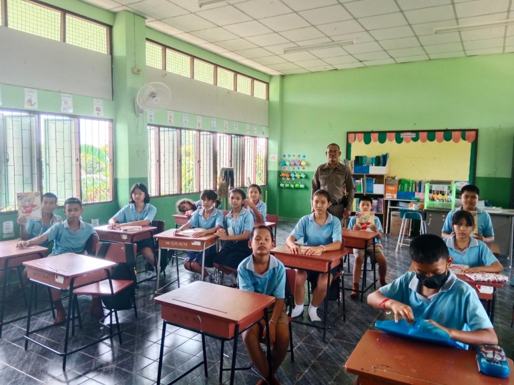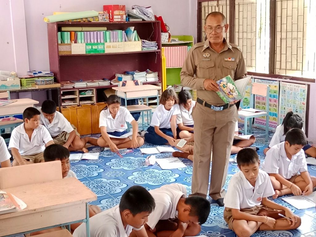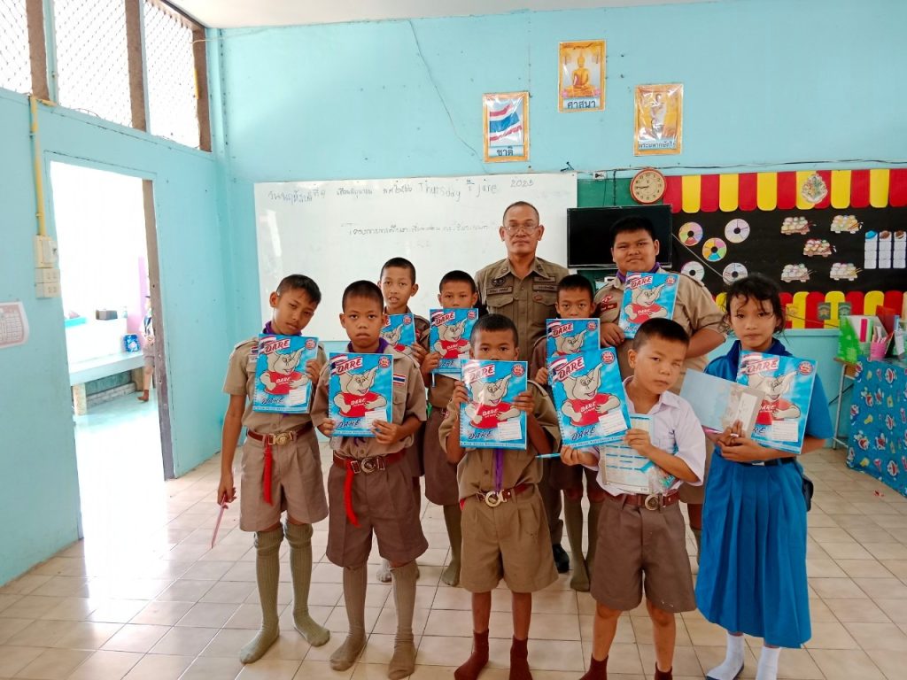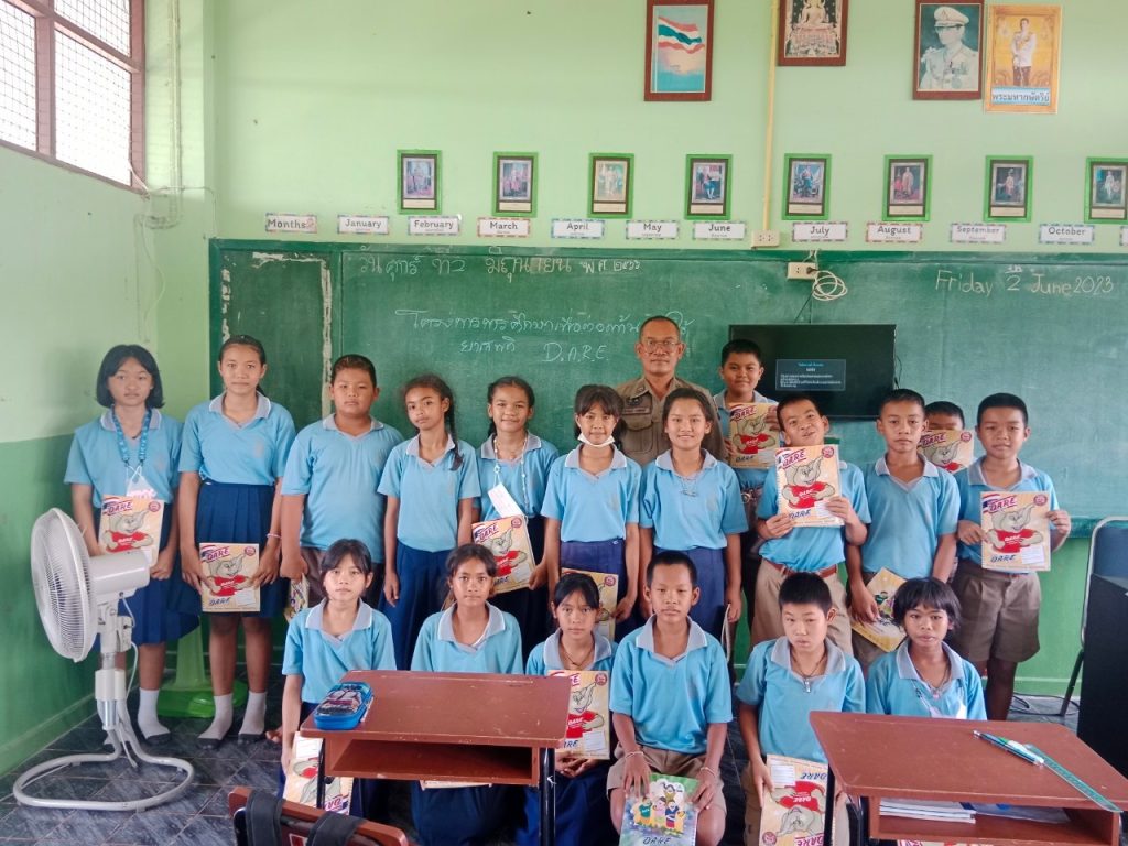 วันนี้ 21 มิถุนายน 2566 เวลา 8.00 – 9.00 น. ภายใต้การนำโดย พ.ต.อ.ชาญชัย หาแก้วผกก.สภ.ไทรย้อย, พ.ต.ท.สุทธิพงษ์ สารพานิช รอง ผกก.ป.สภ.ไทรย้อย, พ.ต.ท.อยู่คง กาวิน สวป.ไทรย้อย ได้มอบหมายให้ ด.ต.ธีรวัฒน์ ชาติศักดิ์ ปฏิบัติหน้าที่ตาม “โครงการการศึกษาเพื่อต่อต้านการใช้ยาเสพติดในเด็กนักเรียน” ครูตำรวจแดร์(D.A.R.E.ประเทศไทย) เข้าสอนโรงเรียนบ้านโคกวังสาร ต.ไทรย้อย อ.เนินมะปราง จังหวัดพิษณุโลก และต่อมา เวลา 9.00 – 10.00 น. ได้เข้าสอนโรงเรียนบ้านพุกระโดน ต.ไทรย้อย อ.เนินมะปราง จังหวัดพิษณุโลก