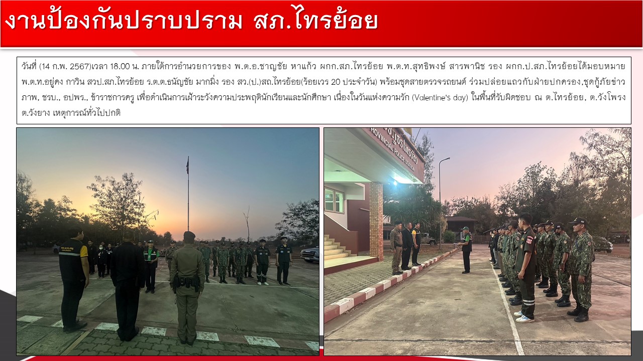ผลการดำเนินงานของ กต.ตร. สภ.ไทรย้อย ประจำเดือนกุมภาพันธ์ 2567